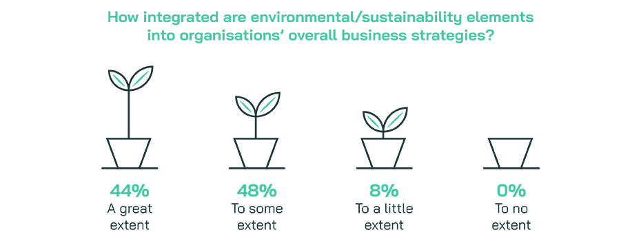 All (100%) report that environmental and sustainability elements are already integrated into their overall business strategy to at least a little extent, highlighting how key sustainability already is to business practices.