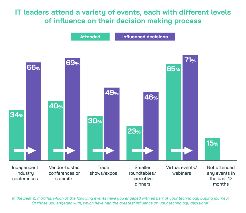 While events deliver value, attendance isn’t always guaranteed. Practical barriers such as cost, or location, play a role in if a decision maker can attend an event, but they’re not the main decider. It seems that if the content is relevant and credible, decision makers see the value in events.