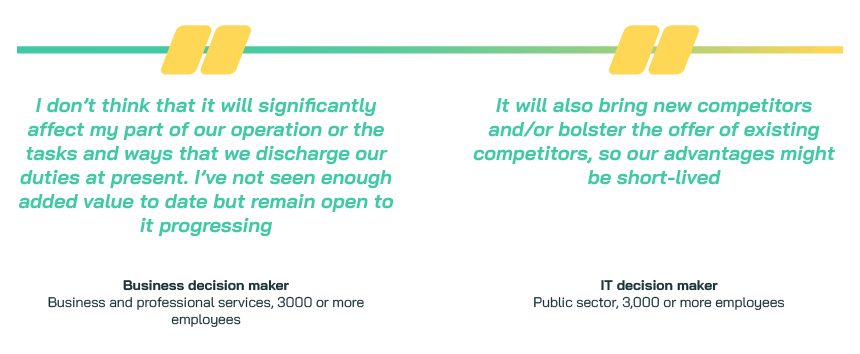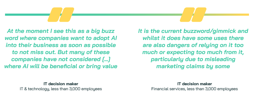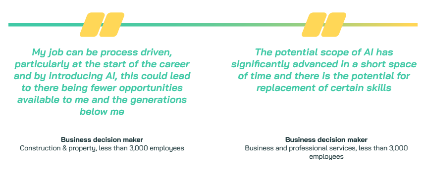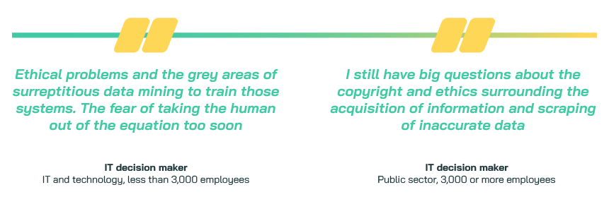 With this in mind, we wanted to take a closer look into where all the uncertainty is coming from. Having asked what their feelings are on AI’s impact, we also followed up to uncover why that might be, with the aim to connect the dots and identify areas where AI vendors could be offering more support.
