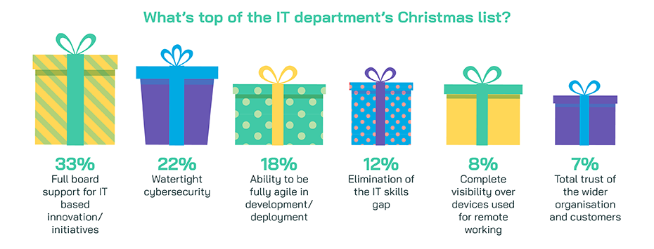 In the first instance, our survey looked to establish what organisations’ IT departments had on their respective Christmas lists. What – in a figurative sense – they would want under the tree, waiting to be unwrapped? Plus, how has this differed, if at all, from last year?