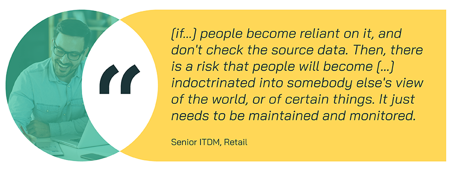 ITDMs acknowledge the ways in which ChatGPT could be detrimental if used for malicious and non-ethical purposes. Perhaps it will make us less productive or enable individuals to take credit for work that is not their own. There are also feelings of doubt surrounding the accuracy of the data, which would need to be verified separately.